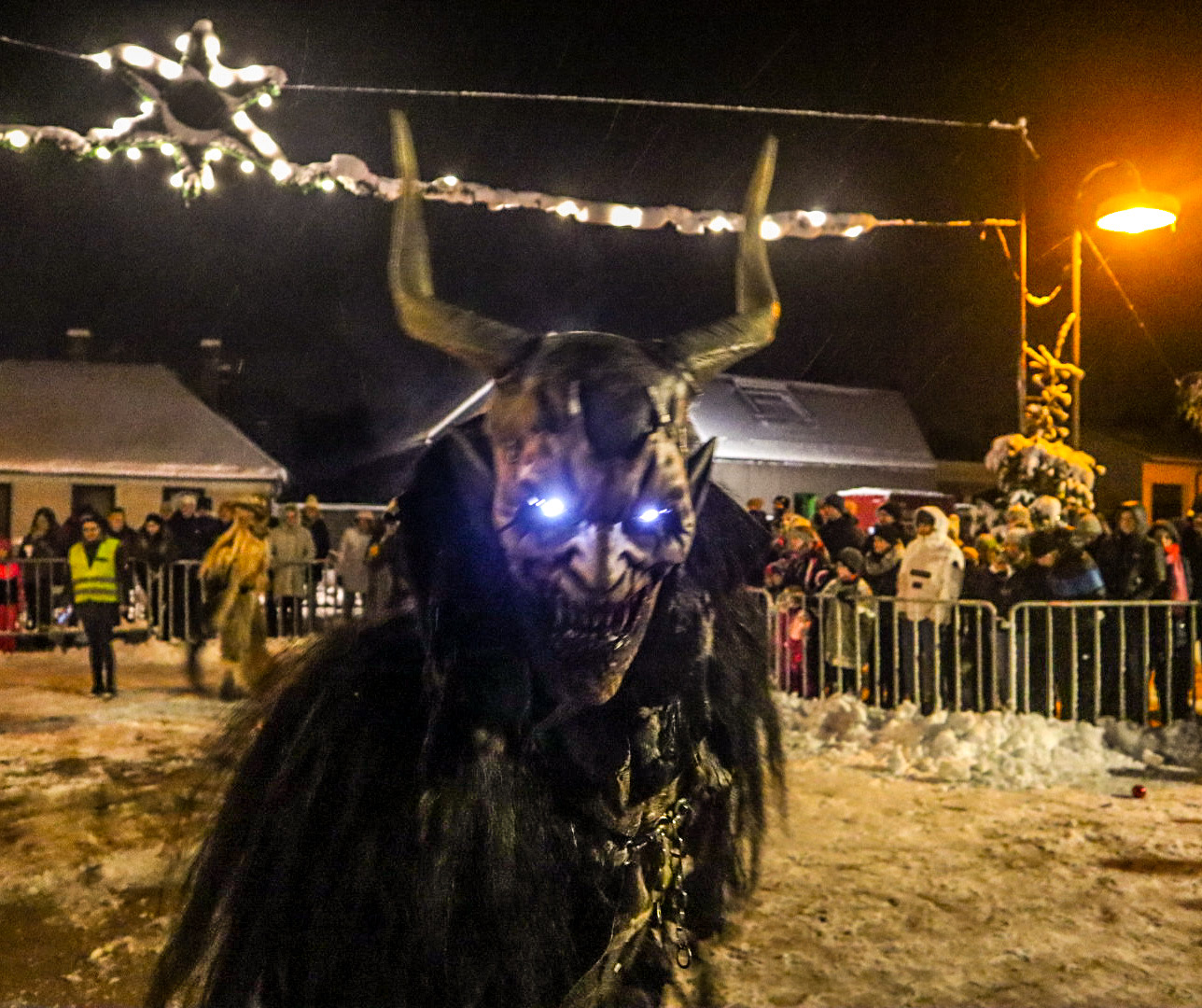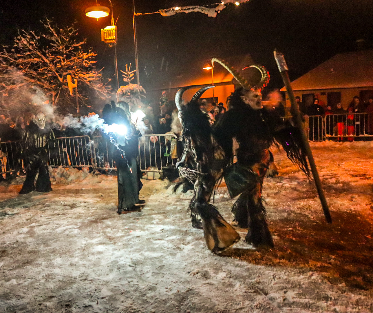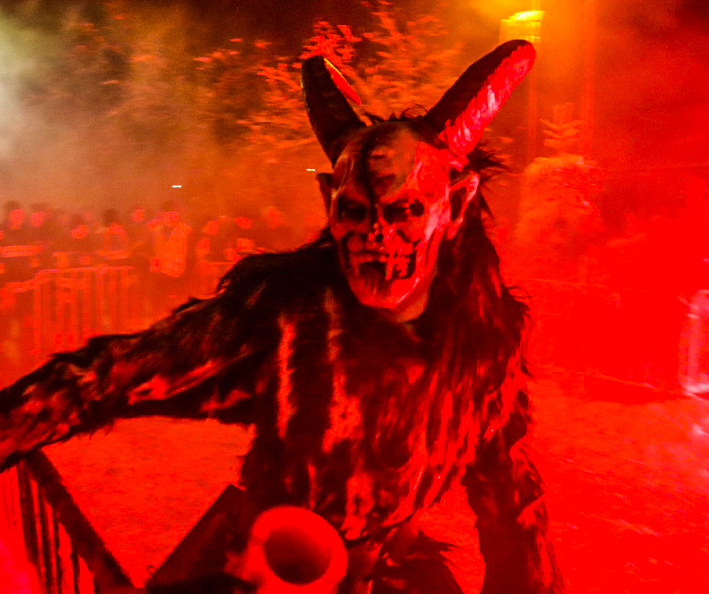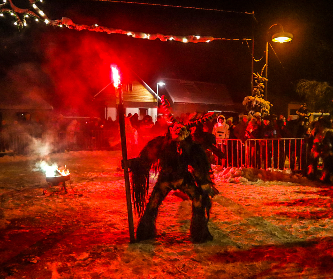 Glühweinstand und Perchtenshow