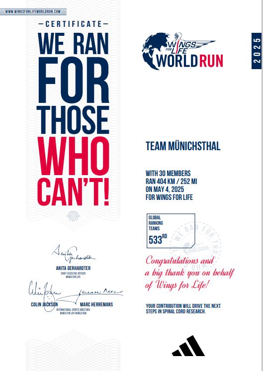 Am 04.05.2025 war es bereits zum 4. Mal wieder soweit. Der Wings for Life World App Run 2025 in Münichsthal ging über die Bühne. Die Freiwillige Feuerwehr Münichsthal, der RC Dreilala Münichsthal und der Tennisclub Münichsthal haben sich auch heuer wieder entschlossen, gemeinsam zur Teilnahme aufzurufen, um für diejenigen zu laufen, die es selbst nicht können. 100% der Teilnahmegebühren und Spenden fließen in Forschungsprojekte, die von Wings for Life unterstützt werden.